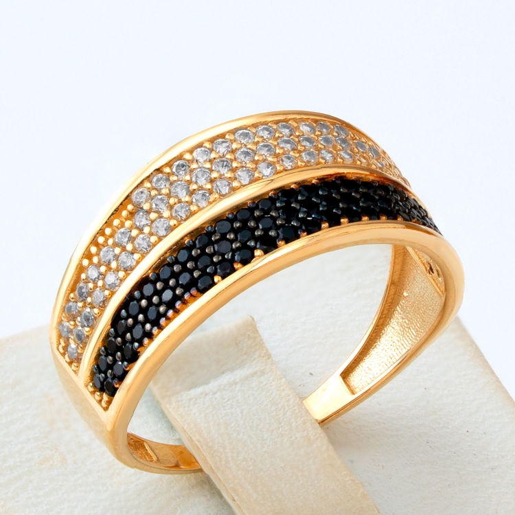 Pierścionek złoty ozdobny z czarnymi kamieniami i cyrkoniami PIR1611