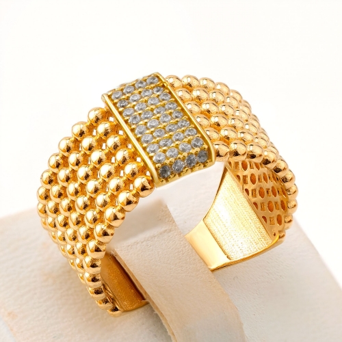 Pierścionek złoty nowoczesny szeroki z cyrkoniami PIR1661