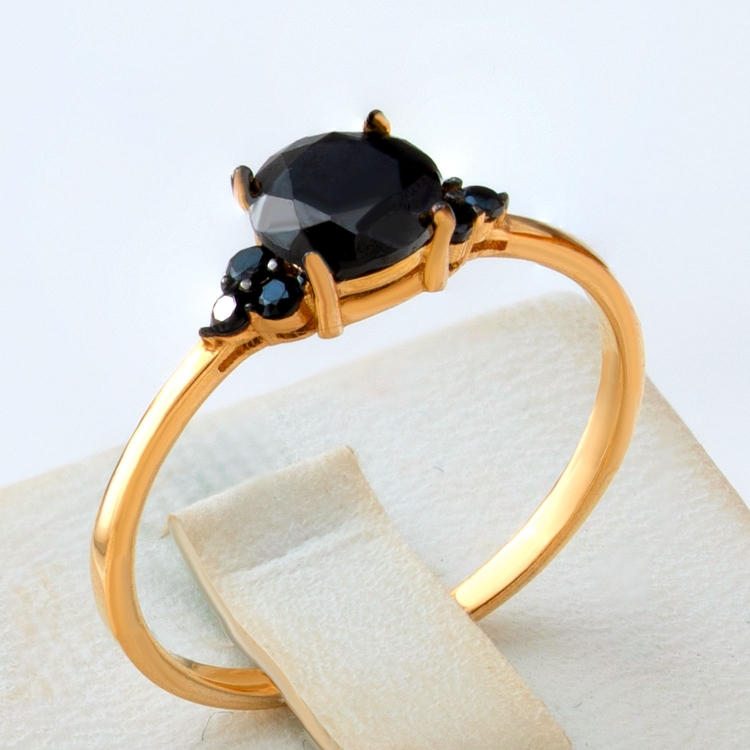 Pierścionek złoty z czarnymi kamieniami PIR1657