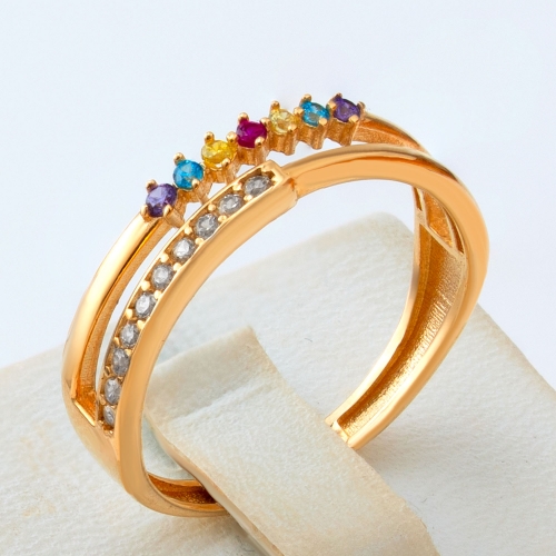 Pierścionek złoty z kolorowymi kamieniami i cyrkoniami PIR1651