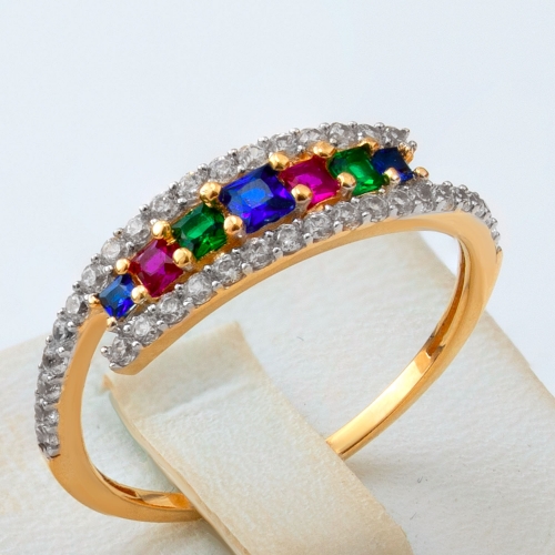 Pierścionek złoty z kolorowymi kamieniami i cyrkoniami PIR1645