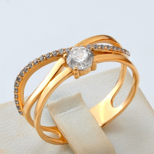 Pierścionek złoty z jedną cyrkonią na ozdobnej szynie PIR1646