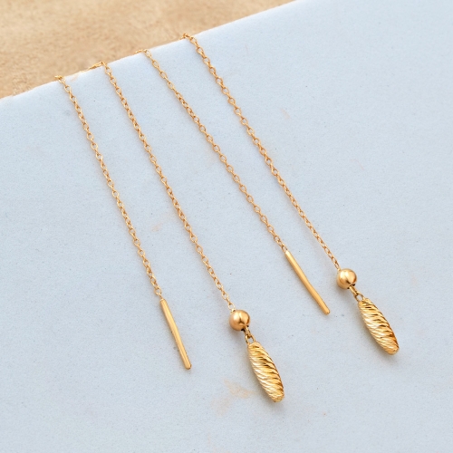 Kolczyki złote przeciągane z kuleczką i diamentowanym elementem KPZ145