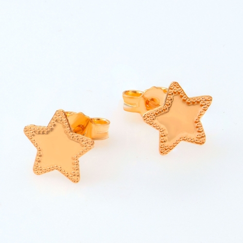 Kolczyki złote gładkie gwiazdki z diamentowanym obrzeżem KNS1247