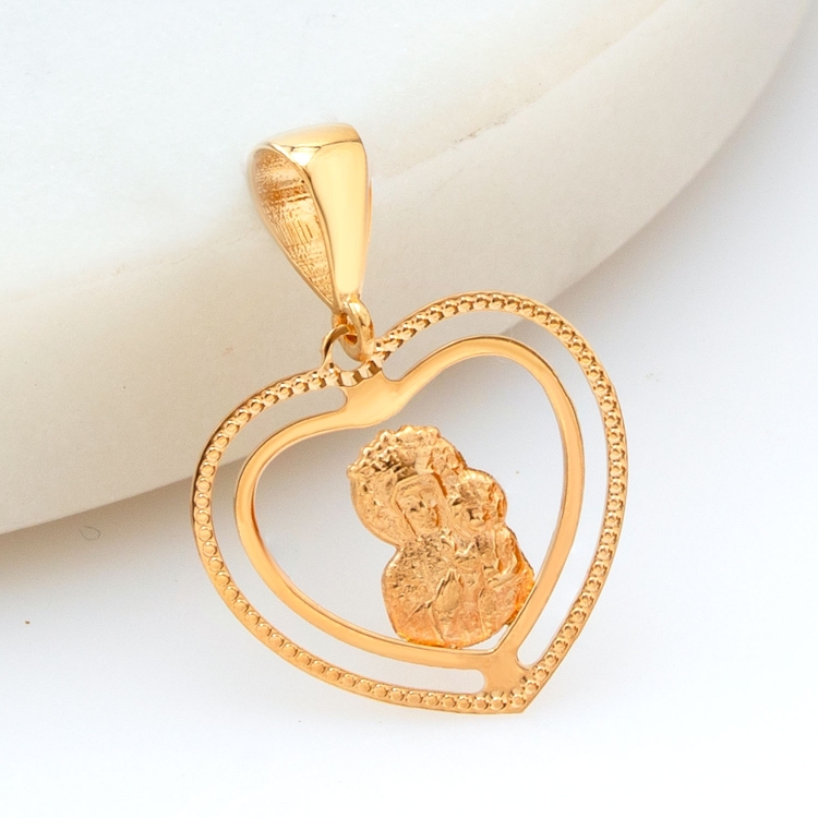 Medalik złoty serce Matka Boska Częstochowska obrzeże diamentowane DEM451