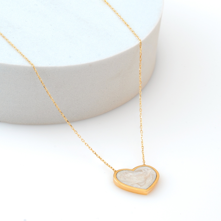 Złoty naszyjnik celebrytka serce z masą perłową CL1482