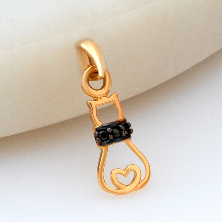 Przywieszka złota kontur kota z czarnymi kamieniami PZR1434