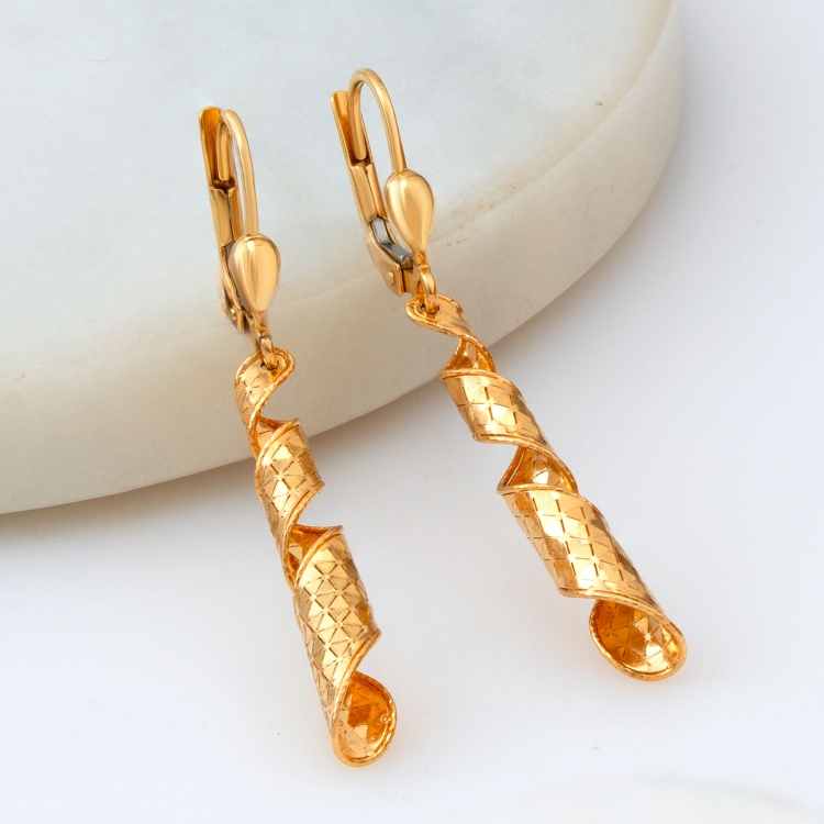 Kolczyki złote wiszące skręcone diamentowane KW1005