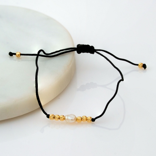 Bransoleta złota na sznurku diamentowane kulki z masą perłową BNS290