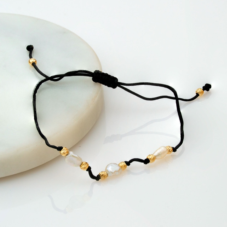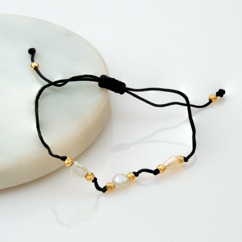 Bransoleta złota na sznurku diamentowane kulki z masą perłową BNS291