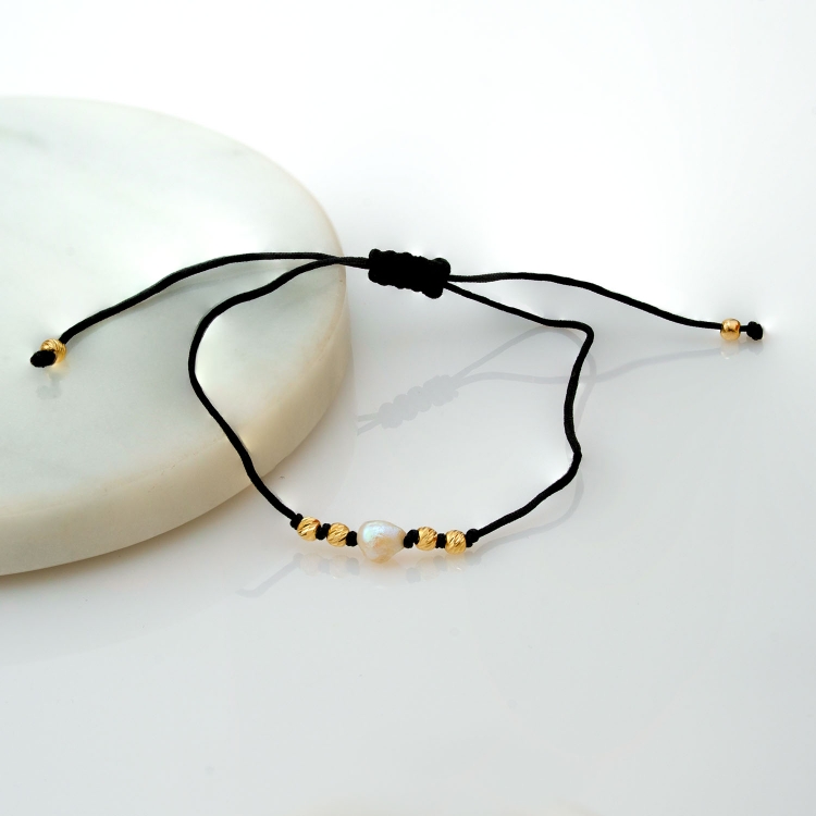 Bransoleta złota na sznurku diamentowane kulki z masą perłową BNS292
