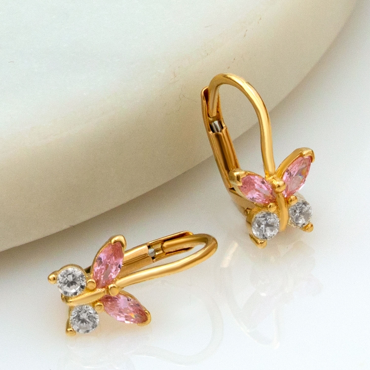Kolczyki złote motylki z cyrkoniami i różowymi kamieniami KW1027