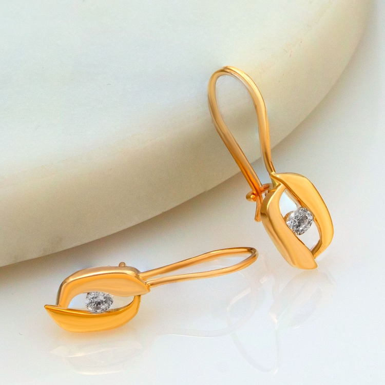 Kolczyki złote gładkie z jedną cyrkonią KW1026