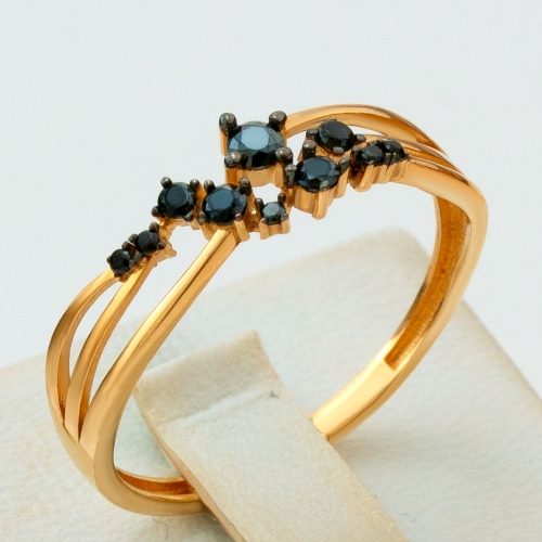 Pierścionek złoty z czarnymi kamieniami PIR1677