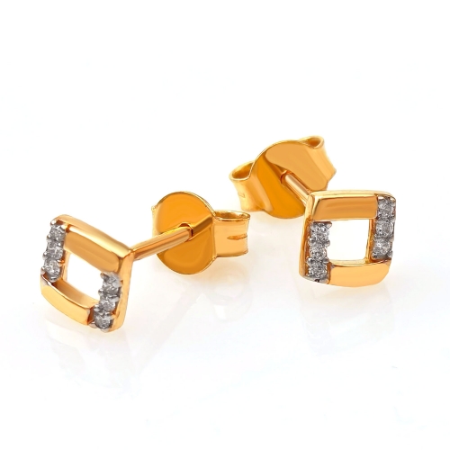 Kolczyki złote ozdobne kontury kwadratu z cyrkoniami KNS1259