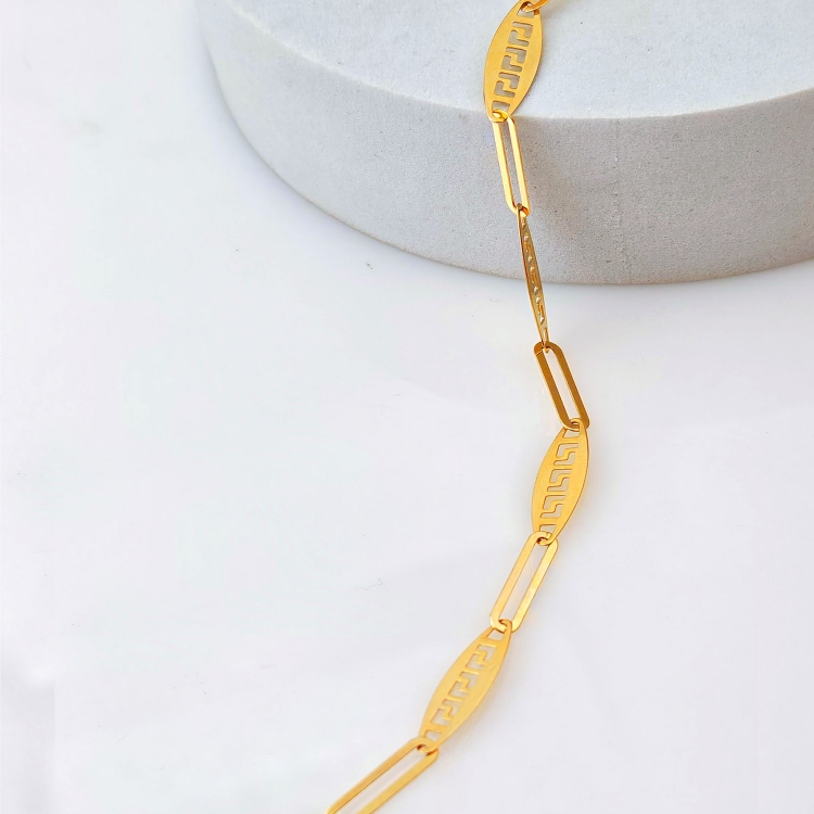 Bransoleta złota owalne ogniwa z greckim wzorem BOZ880