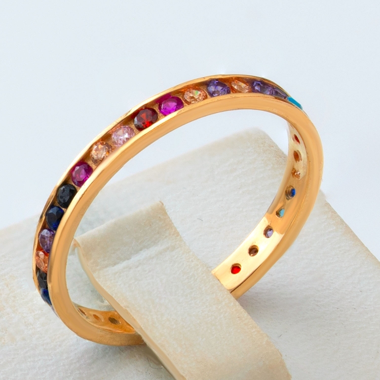 Pierścionek złoty obrączkowy z kolorowymi kamieniami PIR1652
