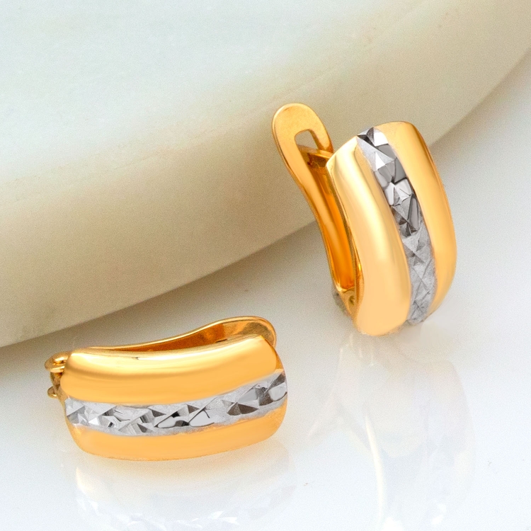 Kolczyki złote laserówki diamentowane dwukolorowe KZ835