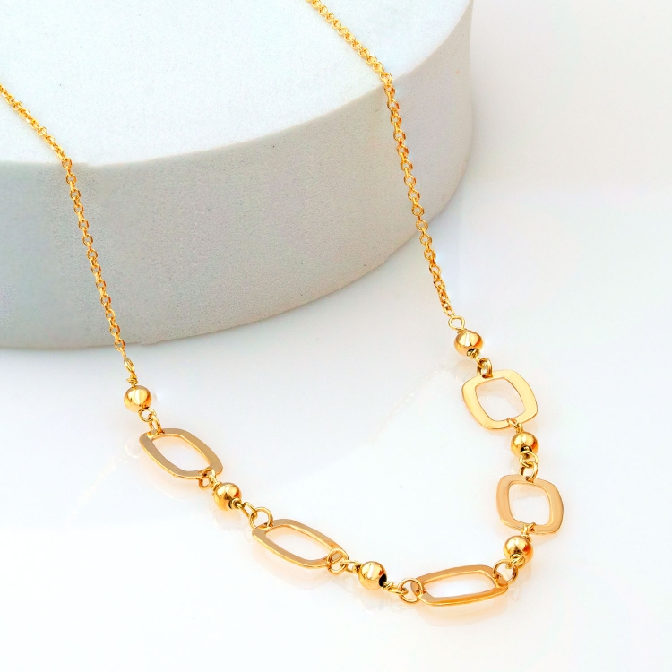 Naszyjnik złoty celebrytka płaskie owalne ogniwa z kulkami CL1492