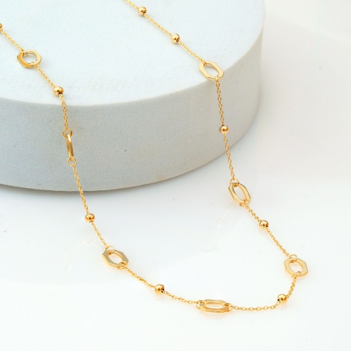 Naszyjnik złoty celebrytka owalne gładkie ogniwa naprzemiennie z kulkami CL1493