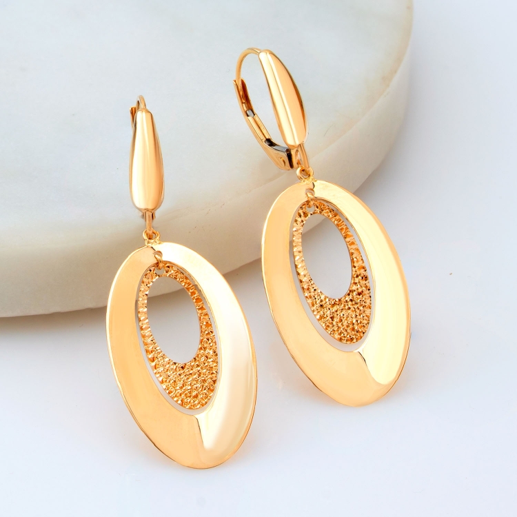 Kolczyki złote połącznoe ruchomo owalne ogniwa gładkie i diamentowane KW1009