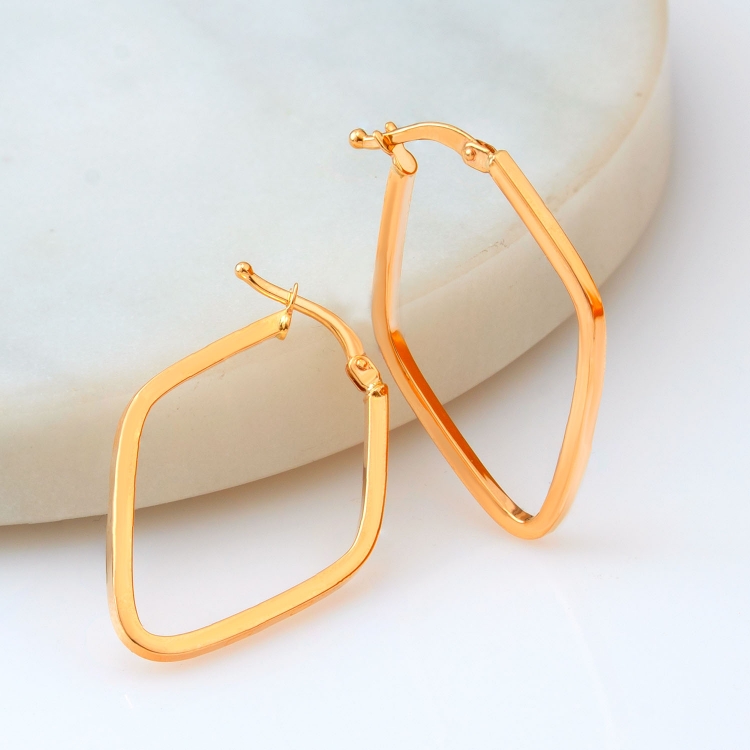 Kolczyki złote koła owalne o przekroju kwadratu KKL494