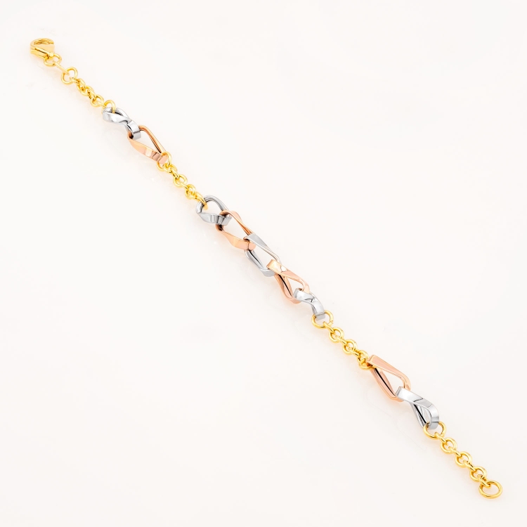 Bransoletka złota połączone trójkolorowe ogniwa BOZ669