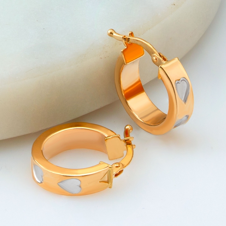 Kolczyki złote koła dwukolorowe z serduszkami KKL521