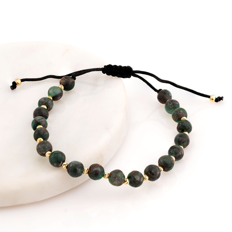 Bransoleta złota na sznurku diamentowane kulki z kolorowymi kamieniami BNS293