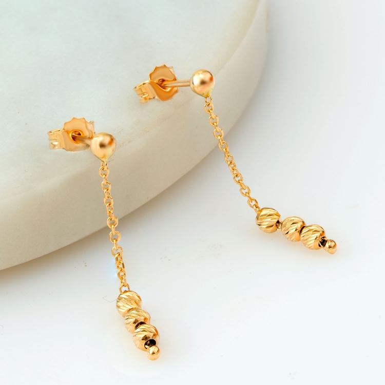 Kolczyki złote diamentowane kulki na łańcuszku KW1051