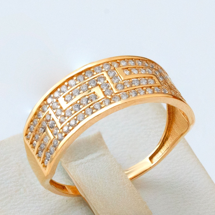 Pierścionek złoty grecki wzór z cyrkoniami PIR1697