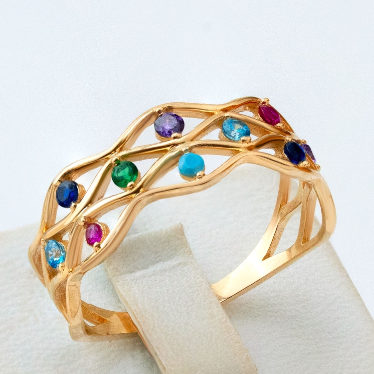 Pierścionek złoty z kolorowymi kamieniami PIR1695