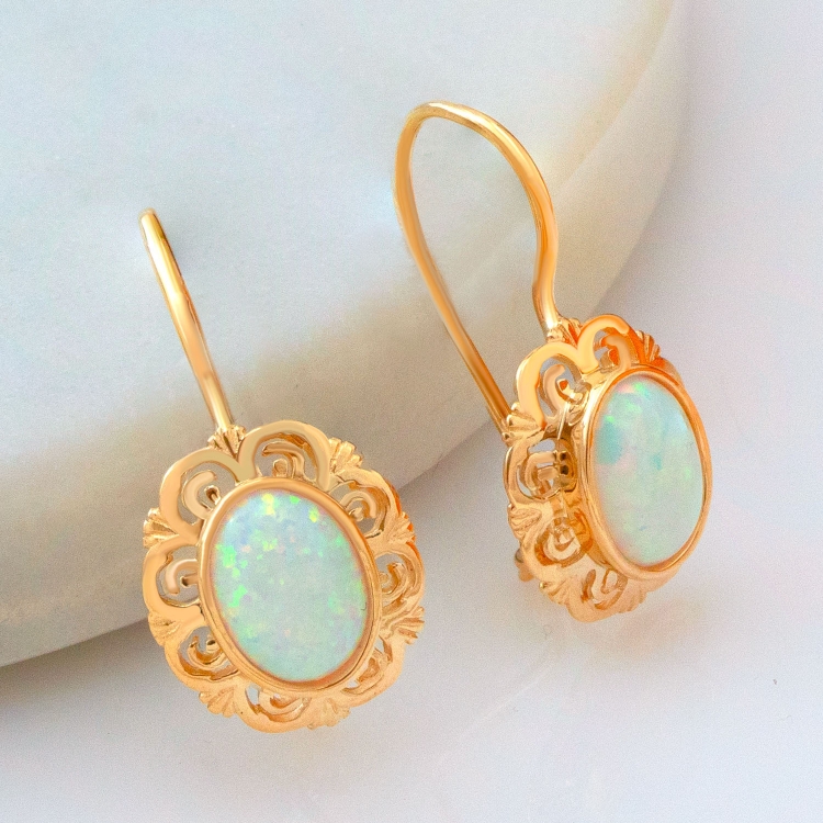 Kolczyki złote owalne z opalem i ażurowym obrzeżem KW1058