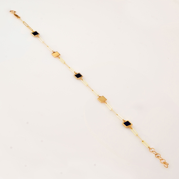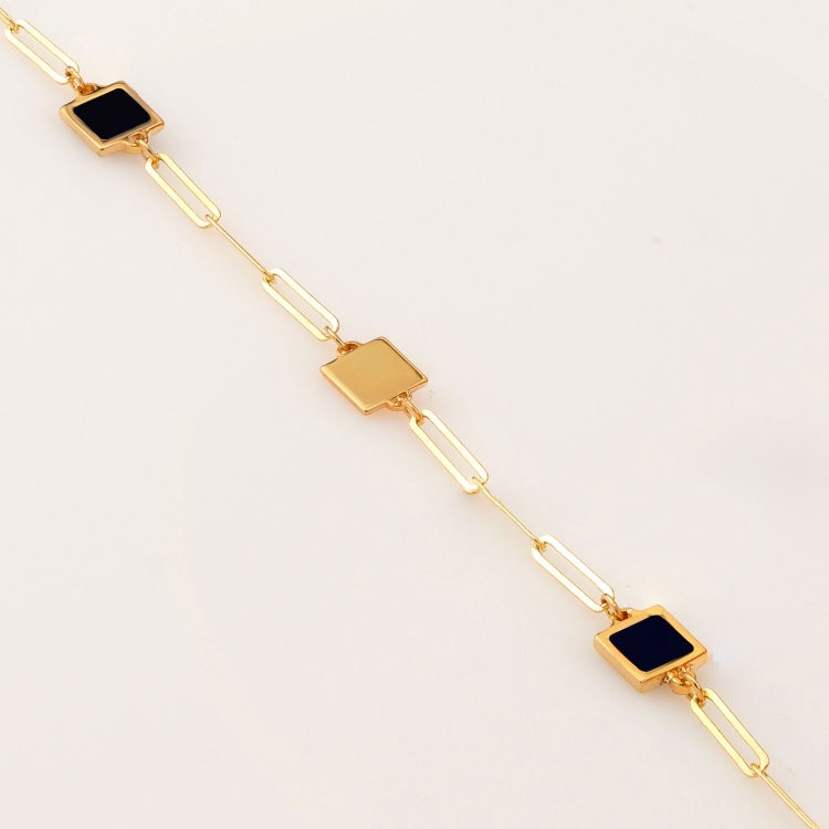 Bransoleta złota kwadratowe blaszki z czarną emalią BOZ897