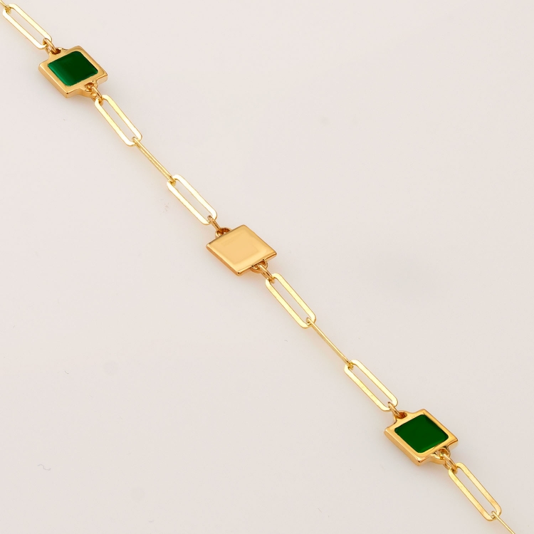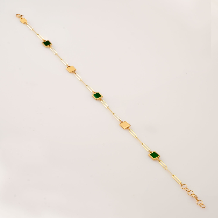 Bransoleta złota kwadratowe blaszki z zieloną emalią BOZ852