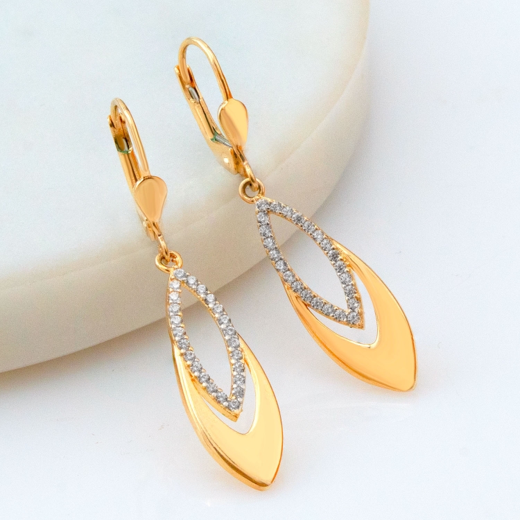 Kolczyki złote ozdobne owalne z cyrkoniami KW1063