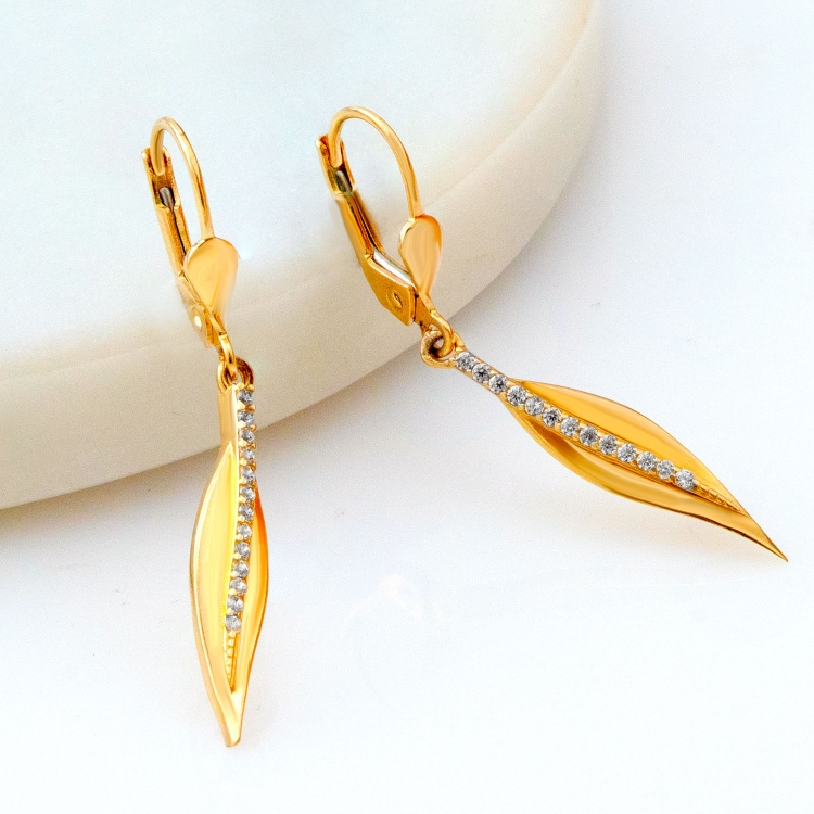 Kolczyki złote ozdobne z rzędem cyrkoni KW1062