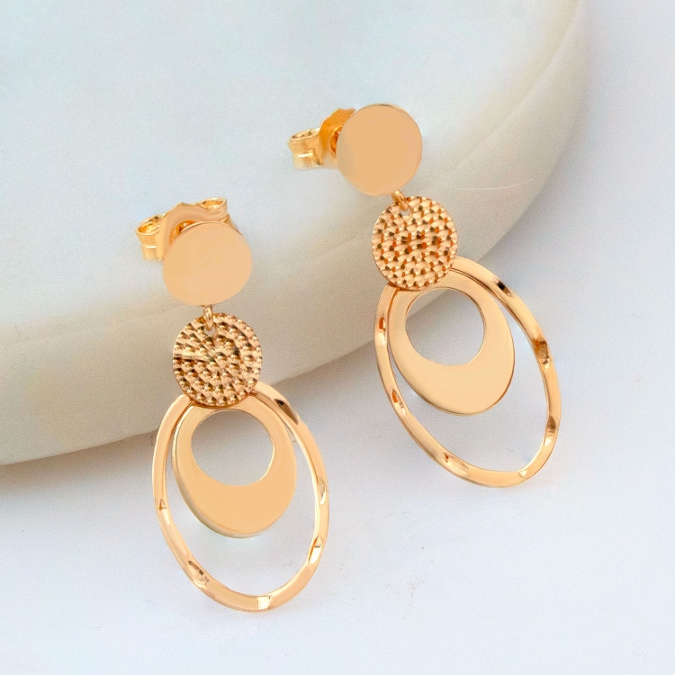 Kolczyki złote owalne i okrągłe elementy diamentowane połączone ruchomo KW1067