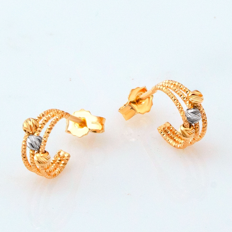 Kolczyki złote diamentowane z dwukolorowymi kulkami KNS1298