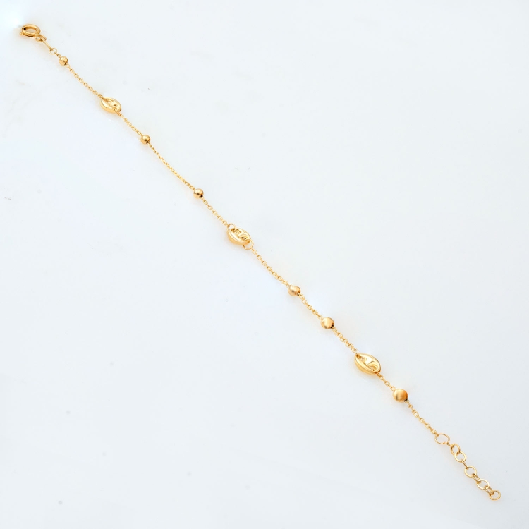 Bransoleta złota celebrytkowa owalne elementy z gładkimi kulkami BCL492