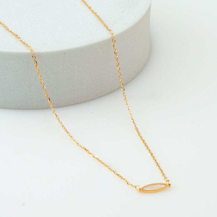 Złoty naszyjnik celebrytka łezka z masą perłową CL1495