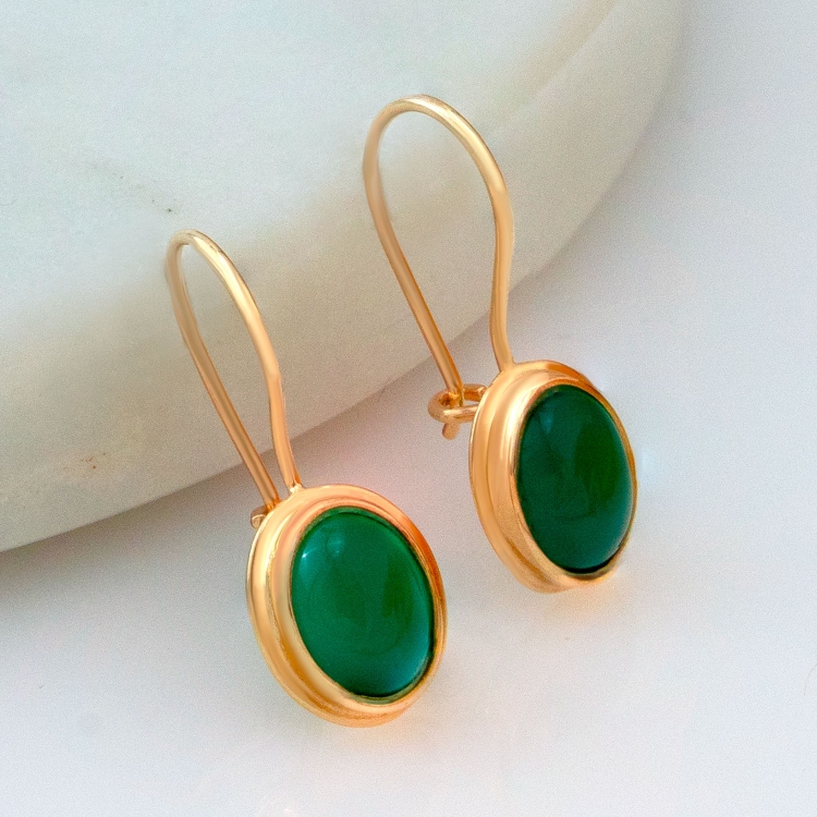 Kolczyki złote owalne z zielonym kamieniem KW1060